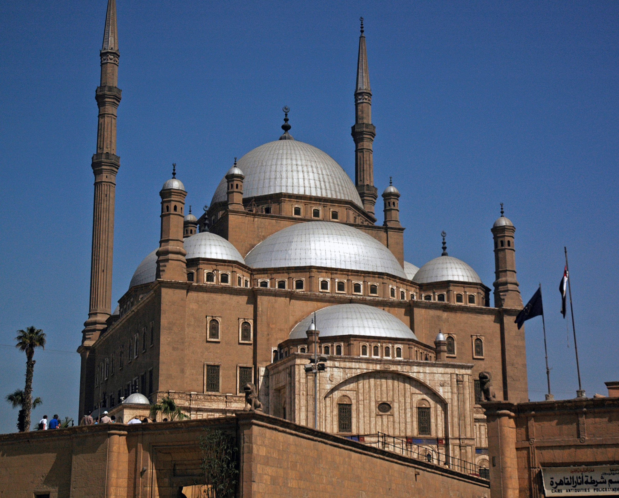Så var det då Muhammed Ali-moskén eller Alabastermoskén som den också kallas. Häruppe har du Kairo framför dina fötter och börjar förstå vidden av vilken stor stad som du befinner dig i. Gråvita hus ligger utslängda tätt intill varandra. Och från vilket väderstreck du än kommer in i staden, kan du se moskén. Moskén ligger på en kulle och ger dig andrum och skönheten är slående. Det gäller mönstret i mattorna, kakelmålningarna, de snidade gallren för fönsterluckorna och huvudkupolen som är rikt utsmyckad med glasinfattningar i olika färger.